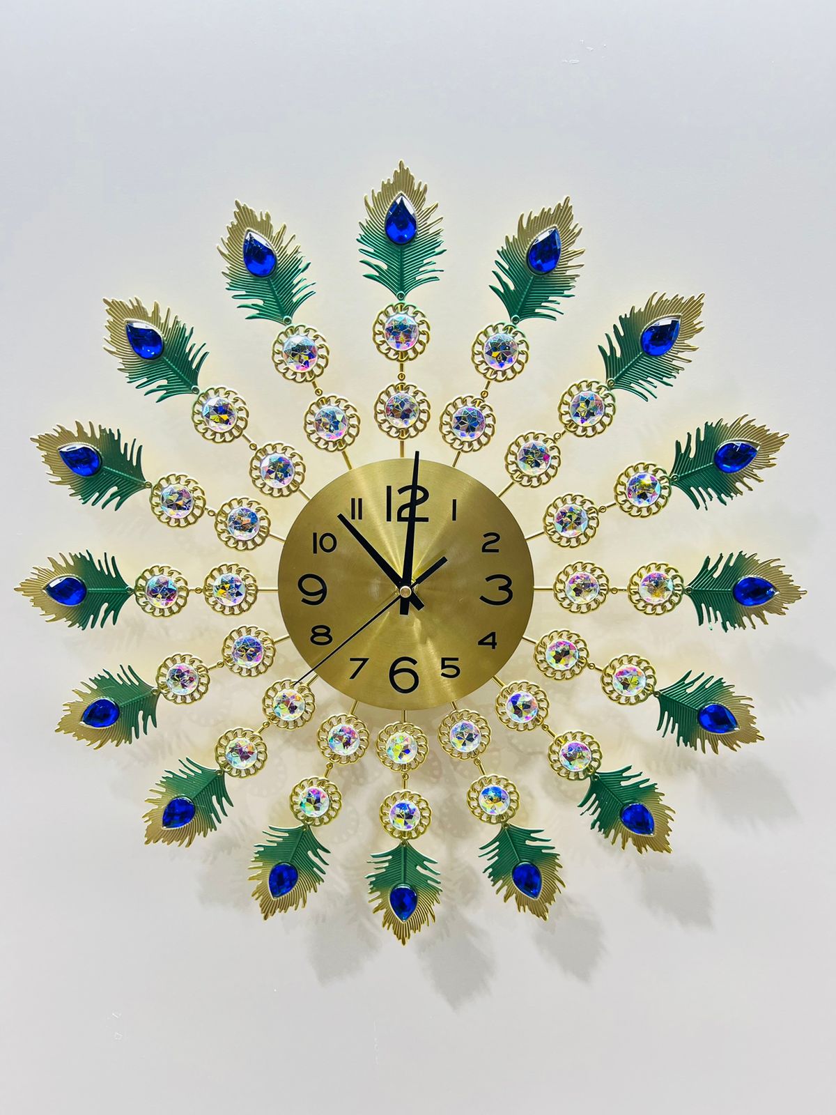 Elegante reloj 3D de plumas de pavo real: construcción de metal, diseño moderno y diamantes de imitación brillantes que hacen que tu habitación se vea bien, una decoración perfecta para tu hogar u oficina.
